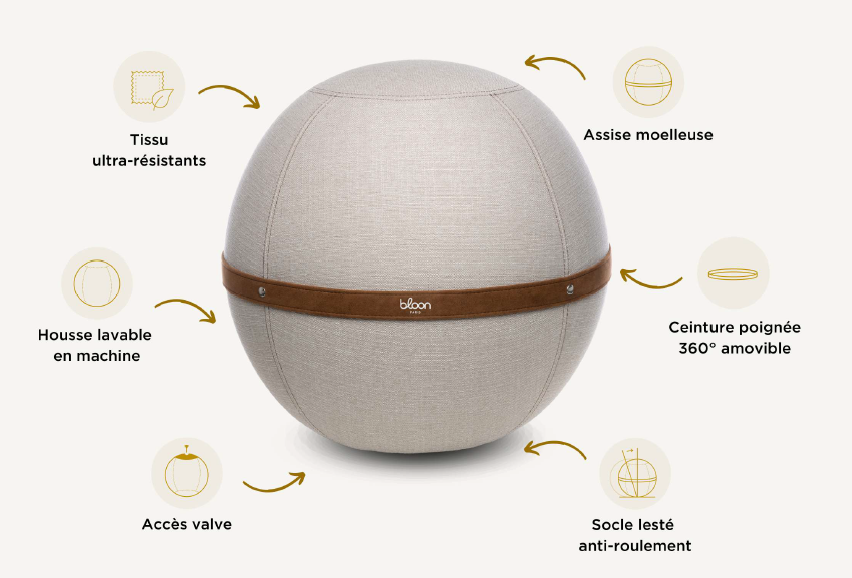 Contrairement aux autres boules assises sur le marché, la boule assise Bloon est étudiée pour s'intégrer dans un espace professionnel.