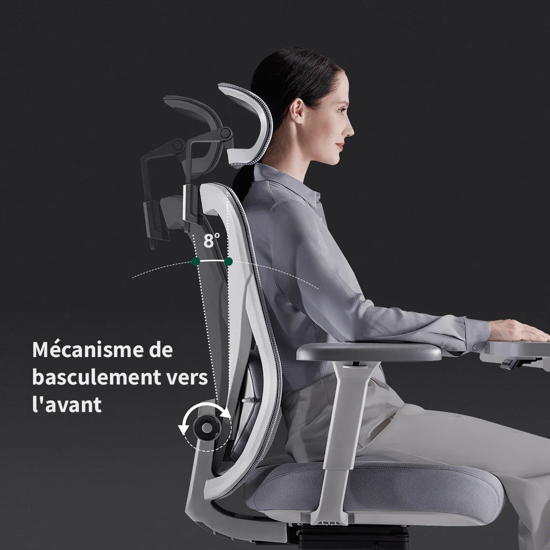 Le mécanisme de basculement vers l'avant vous permet de garder un maintient dorsal même lorsque vous vous penchez en avant, que ce soit pour lire un document ou vous rapprocher de votre écran