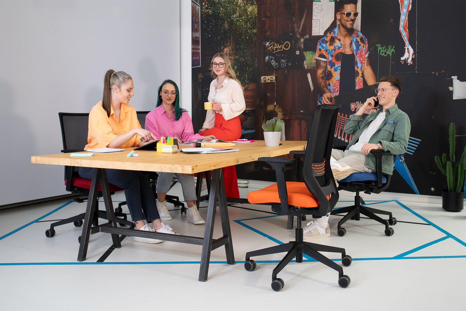 Très polyvalente, la chaise to sync flex office s'intègrera à tous vos espaces: bureaux individuels, flex office, salle de réunion etc...