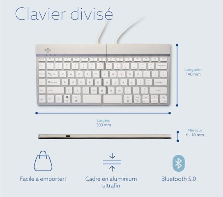 Compact, fin, léger et scindable, ce clavier vous accompagnera partout afin d'adopter des habitudes de travailles saines autant au bureau qu'en télétravail