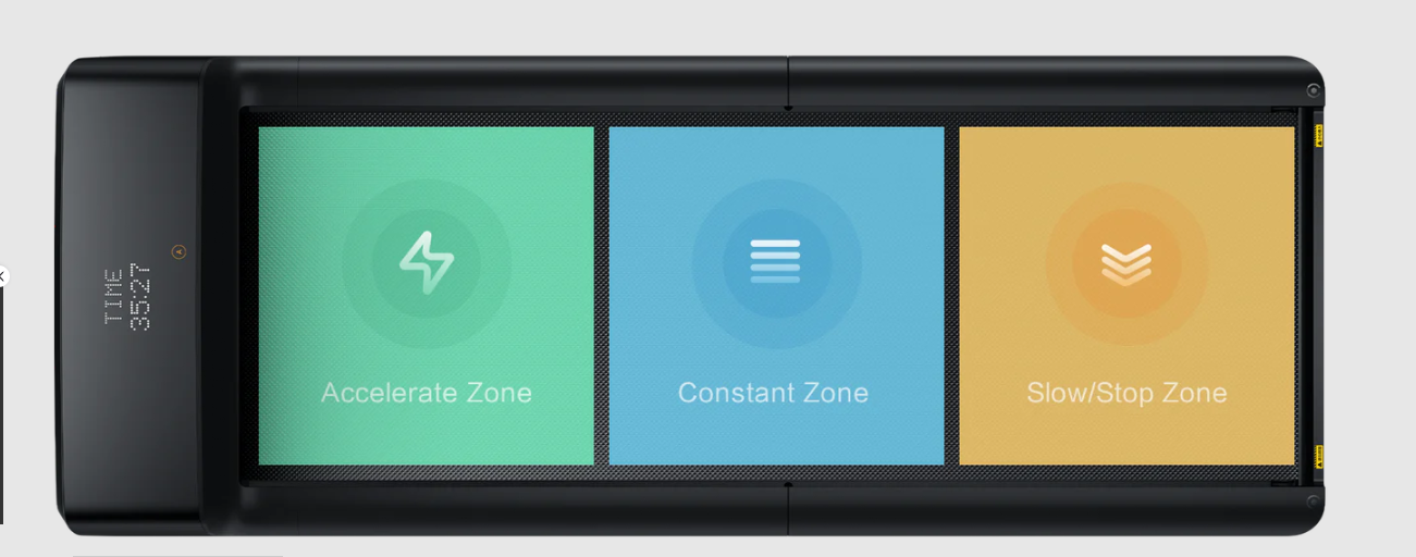 En mode automatique, il n'est pas nécessaire de manipuler la télécommande. Le tapis démarre de lui-même et accélère dans la zone avant. Il maintient une vitesse constante dans la partie